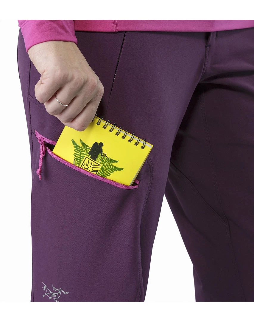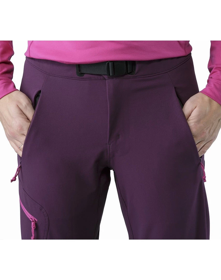 Purposeful design is an Arc’teryx commitment. Concentrating on athletic freedom and performance, the Gamma AR is specifically patterned for the female athlete in motion. Arc’teryx Trim fit provides a low profile that helps maximize fabric performance and layers easily under a hardshell. The gusseted crotch and built-in articulation at the knees and seat combine with the fabric’s four way stretch for exceptional freedom of movement. The cuffs are trim and adjust to reduce volume and improve visibility to the feet. The waist secures with a low profile integrated adjustable webbing belt and is lined with brushed polyester for comfort and moisture control under a harness or pack belt.