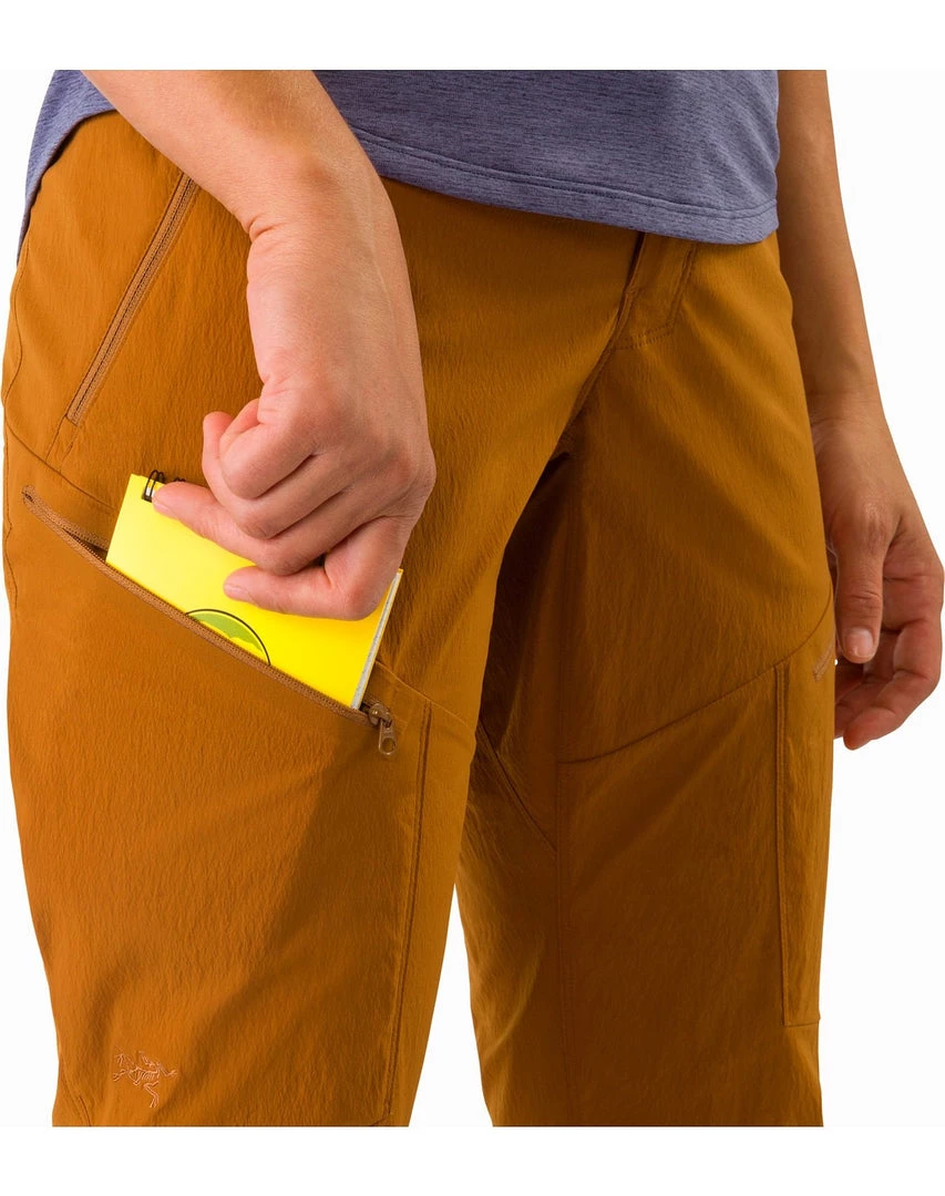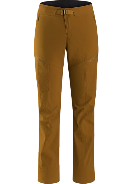 Designed to meet the range of terrain and conditions encountered on long backpacking and trekking trips, the Palisade Pant is versatile, lightweight, dries quickly, and provides comfort, protection and freedom of movement on the trail. The women’s specific trim fit is streamlined and lies close to the body, minimizing excess fabric that would otherwise get in the way while negotiating technical terrain. Articulated patterning and a gusseted crotch work with the fabric’s stretch to deliver the ergonomic freedom needed to handle steep grades and shifting topography. Designed to ride easily under a pack’s hipbelt, the wide waistband has brushed polyester lining for comfort and moisture management. Cargo pockets are easily accessed while wearing a pack, and have volume pleats that expand their capacity while in use, but allow them to lie flat when empty. As a component of the Arc’teryx Traverse collection, the Palisade Pant aligns with Arc’teryx footwear, packs and apparel to create comprehensive systems for extended backcountry trips.