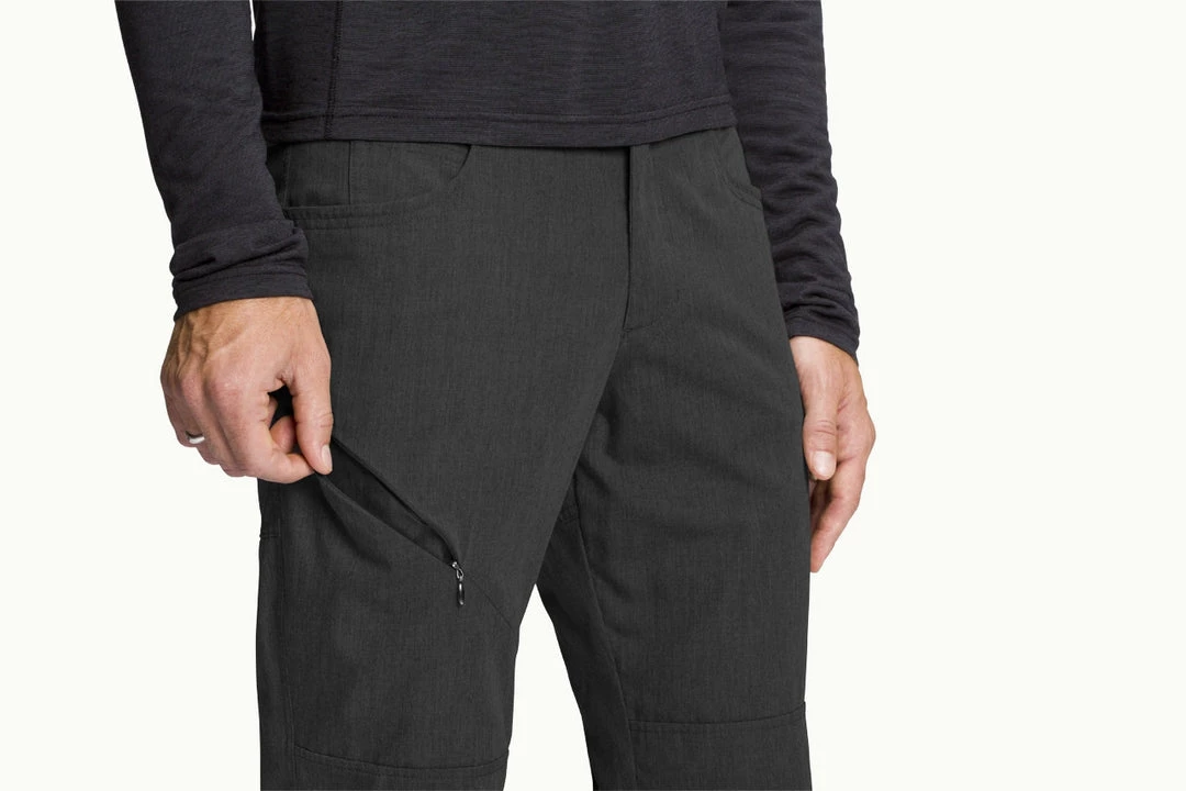 Quick-drying recycled polyester meets the soft, lightweight look and feel of organic cotton for a comfortable pant that offers technical benefits in a durable, heathered fabric. The fabric is easy to care for – just wash in the sink and hang to dry. The reflective tape inside the hem makes this a necessary piece in any commuter’s wardrobe.