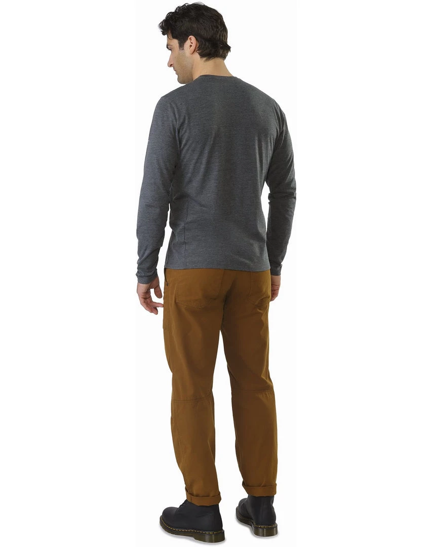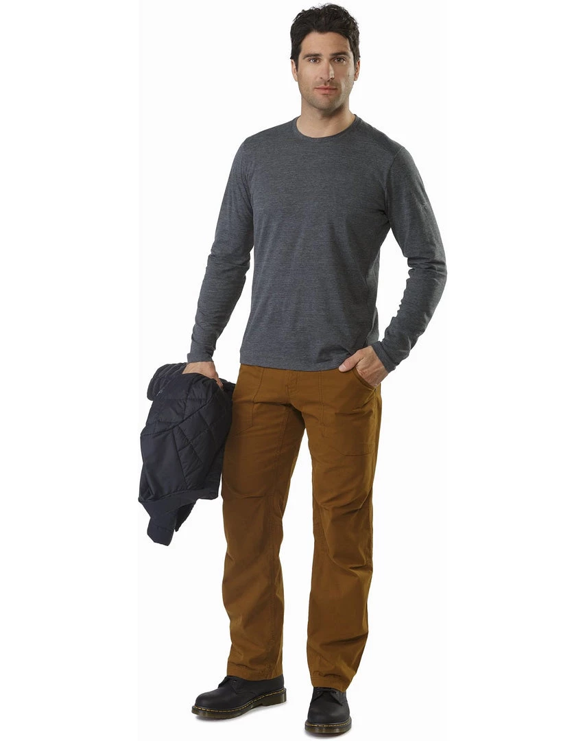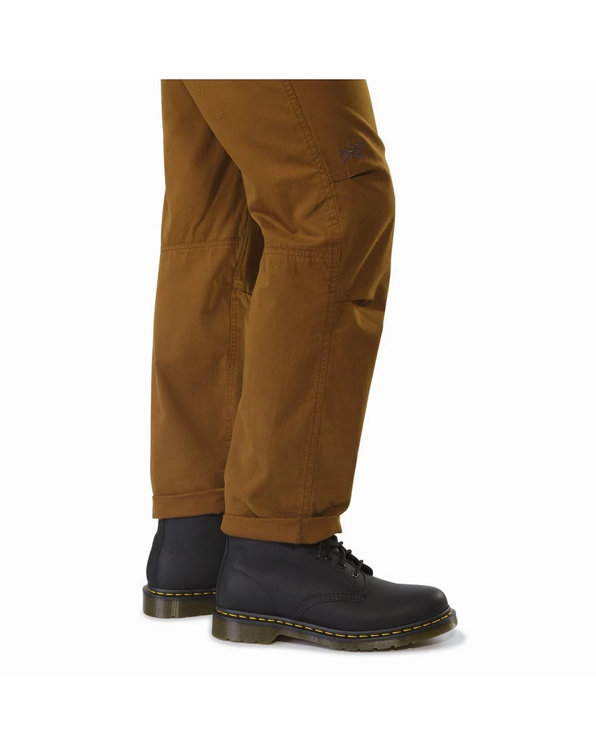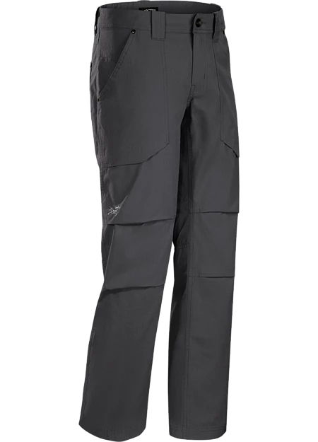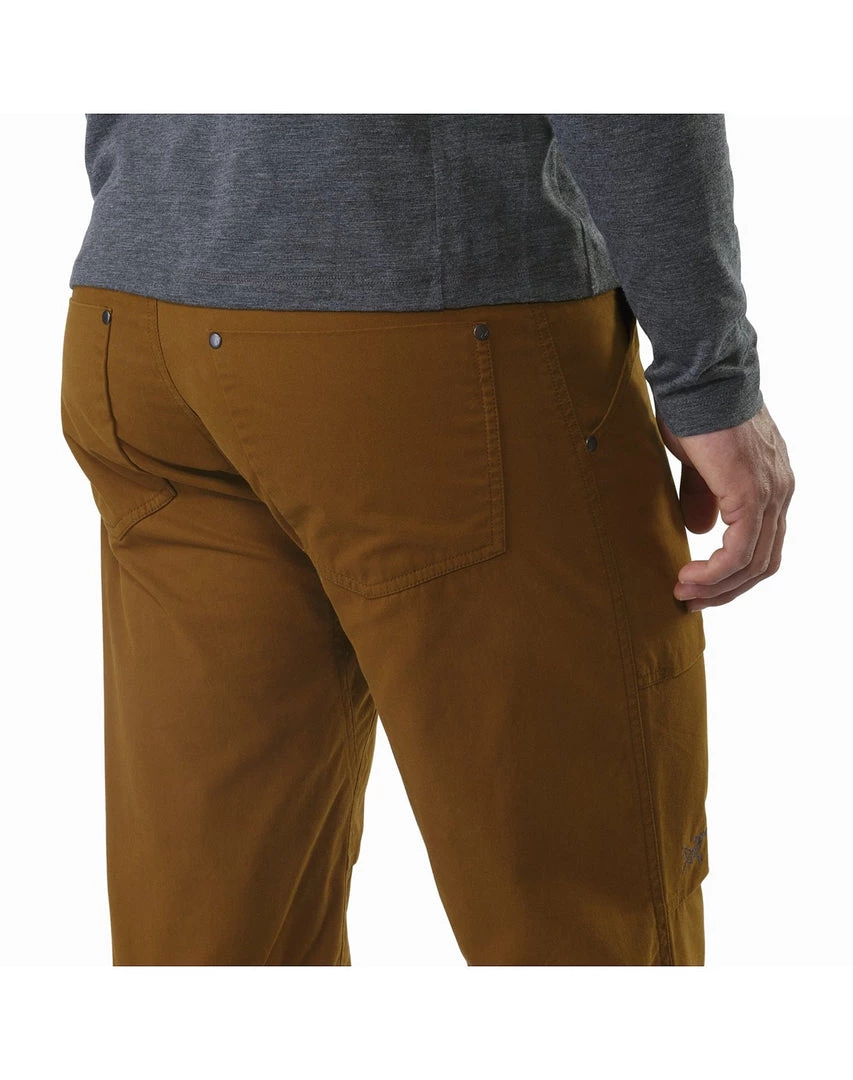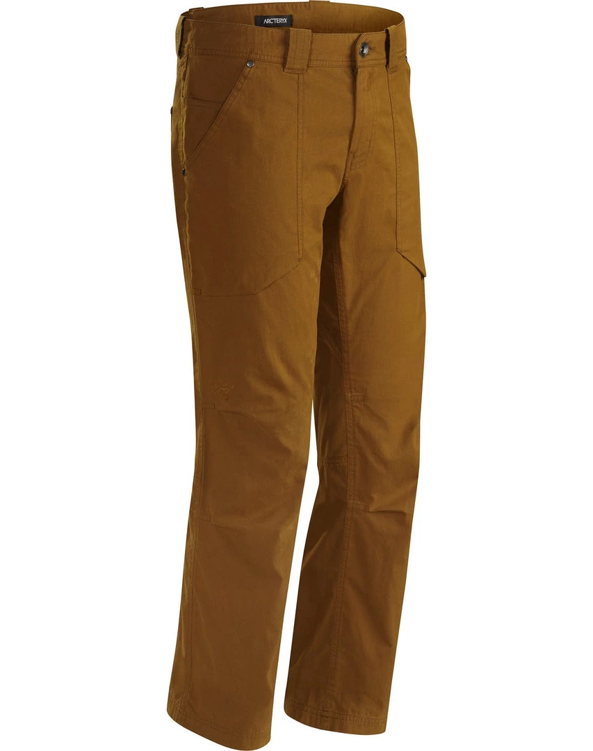 The Arc’teryx regular fit combines with articulated patterning and gusseted construction for maximum freedom of movement. Features include large bellowed hand pockets, two back pockets and a coin pocket. The fixed waist closes with a shank button.